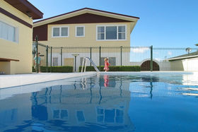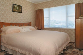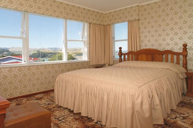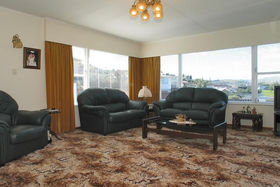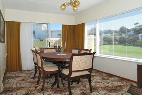 The formal dining opens to the outdoors. Separate lounge, four bedrooms. Two toilets. A large double garage with workshop area. Views to the city centre.